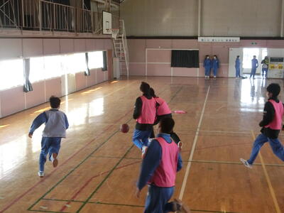 最後の体育は、みんなの希望でバスケットボールとバレーボールでした。