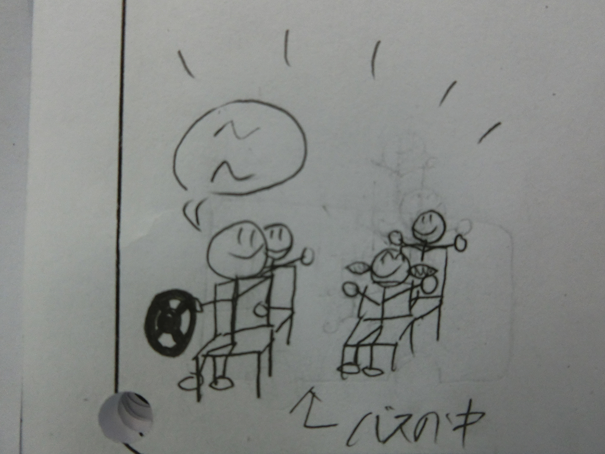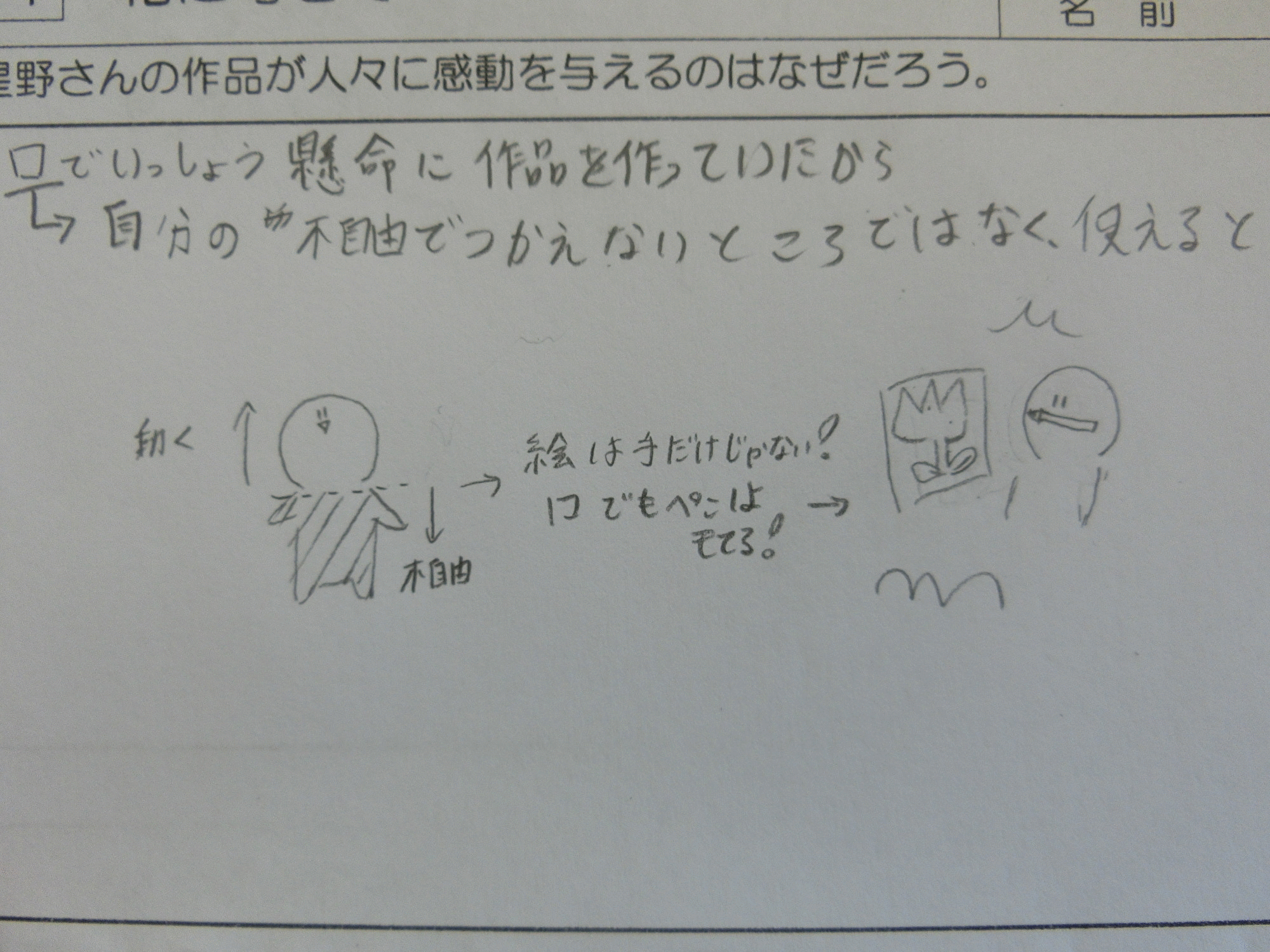 説明した人が、他の人が描いた絵を持って写真を撮りました