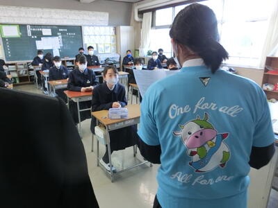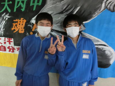大内中学校のシンボルキャラクター「モーウチモカウ」くんです。