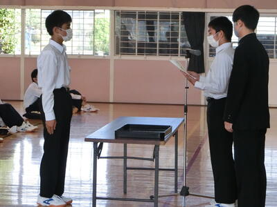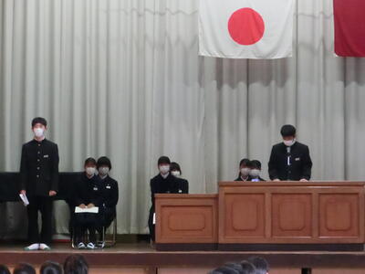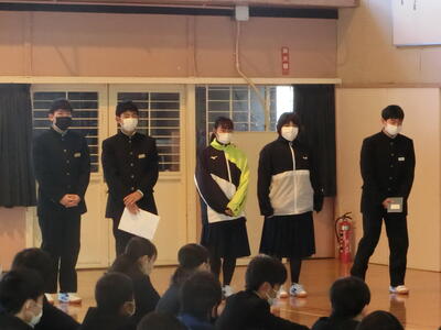 生徒会各種委員会委員長に立候補した生徒たちに、