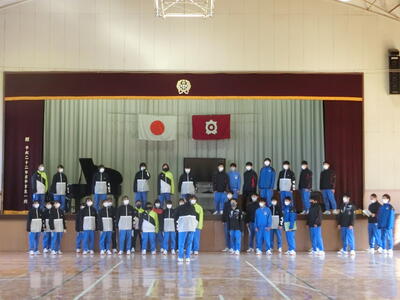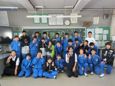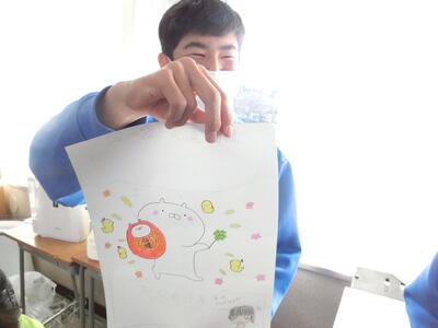 大内中学校のシンボルキャラクター「モーウチモカウ」くんです。