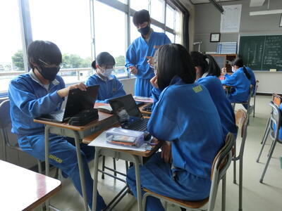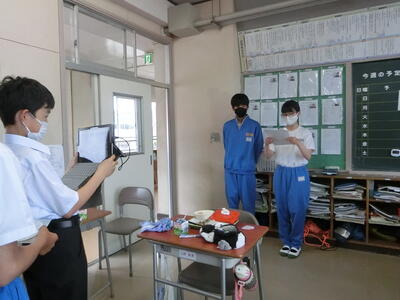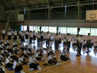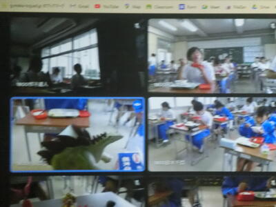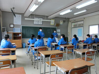 対面式では、学校紹介や、部活動紹介を行いました。(下の写真は、その時の様子です。)