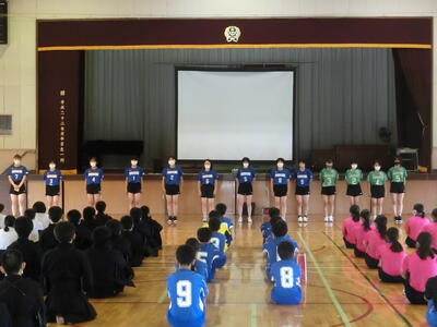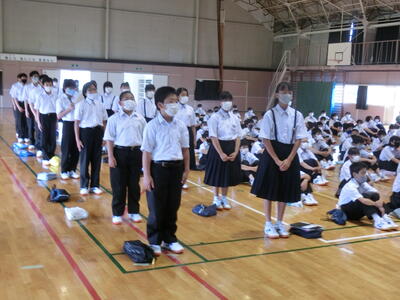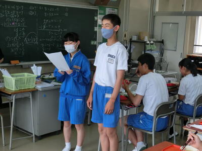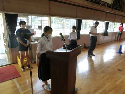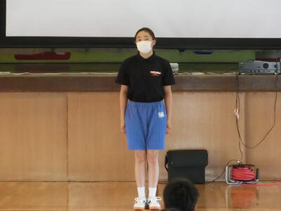 今回の朝会と体育委員と美化委員会の発表がありました。