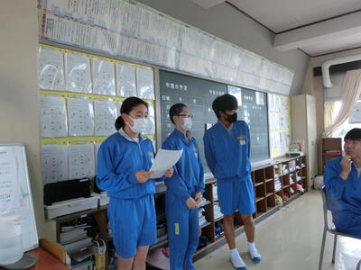 生徒更新:生徒会朝会(体育・美化)、クラスのいじめ撲滅宣言
