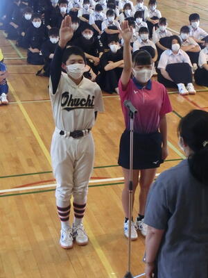 役員は、緊張しながらも堂々と、各種委員長は活動方針をはっきりと伝えることができました。