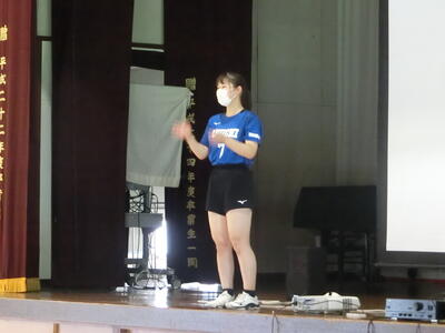 部活動紹介では先輩たちが1年生に部活のこと知ってもらおうと一生懸命、発表していました。
