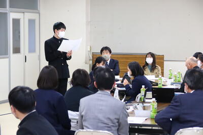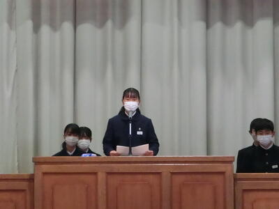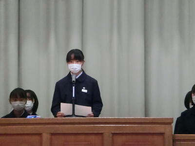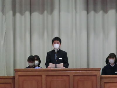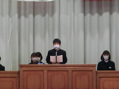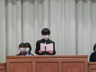 生徒のみなさんは、僕たち(生徒会や生徒)が考えるべき内容に関しては、より良くしていきたいという意見があったら、いつでも僕のところへ相談に来てほしいと思います。