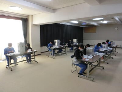 まず昨年度の会場の写真を見て机や椅子を準備、次に簡易ベッドを準備をしました。