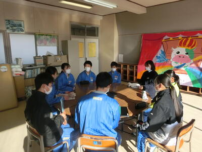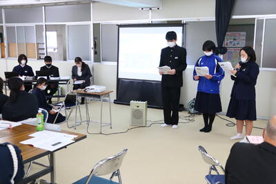 生徒会役員と生活委員が集まって、生徒のみんなに「どうしたらいじめについて