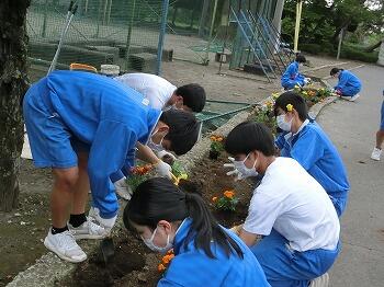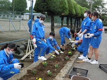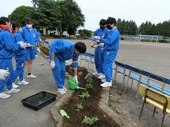 緑化委員・美化委員を中心に、花壇をきれいにして新しい花を植えました