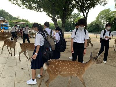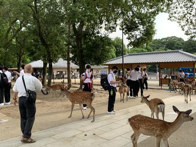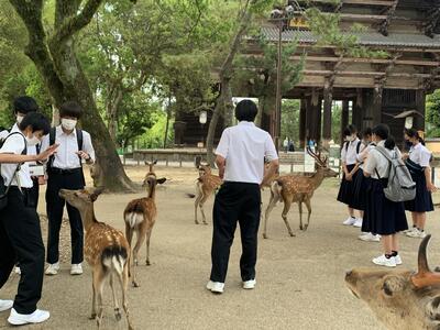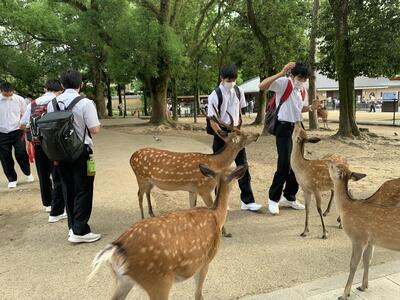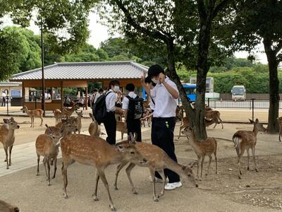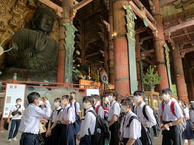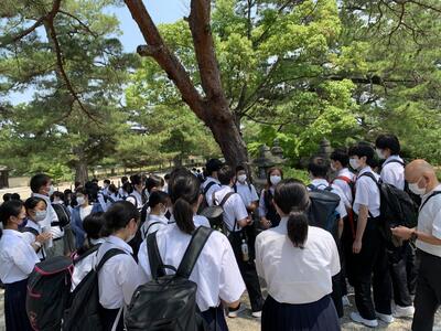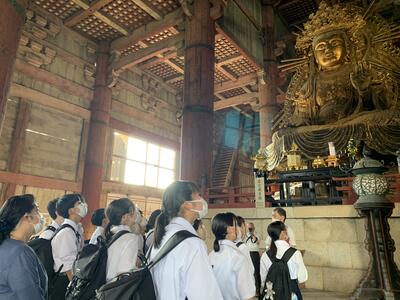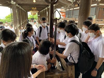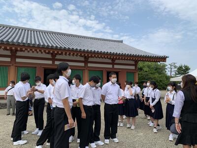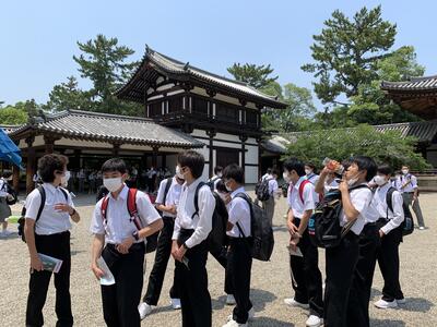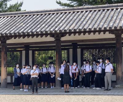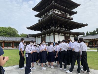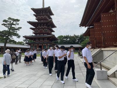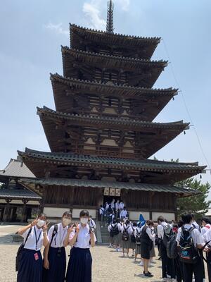 お昼も食べ終わり、最初に向かったのは法隆寺です!教科書で見た写真、学んだことが実際に見られて、とても楽しそうでした