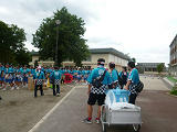 昨年より暑さが厳しい中でしたが、足銀前の待機場所ではアイスなどを配り、暑さで火照った子どもたちに笑顔が戻りました。