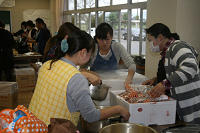 PTAでは、模擬店でハリケーンポテトとフランクフルトを販売しました。