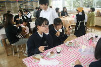 足銀前の待機場所でアイスやゼリーを配布すると、疲れた生徒たちの顔に笑顔が戻りました。
