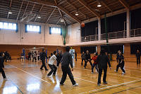 武田会長のあいさつ、野口副会長の選手宣誓に続き、入念な準備運動の後、3試合の総当たり戦が行われました。