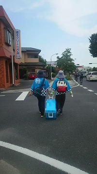 PTAでは、冷水をリヤカーで運び、子どもたちをサポートしました。