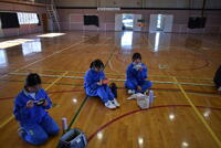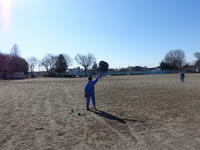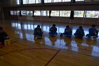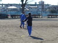 お互いにゴロを投げ、ボールを捕ってから投げる動作を練習しました。確実に上手になってきました。