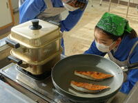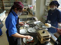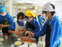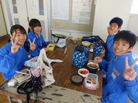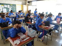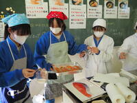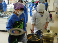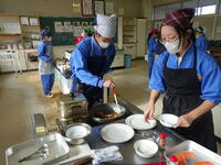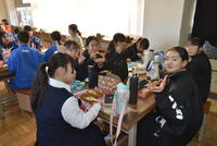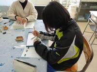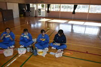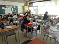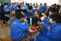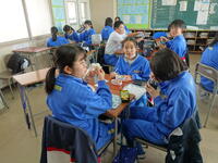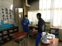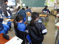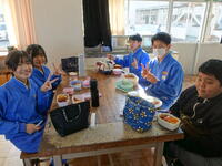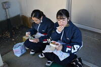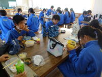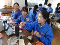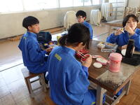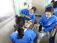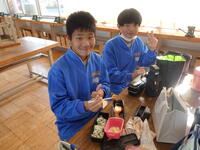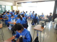 芳賀地区専門学科生徒研究発表会に参加する生徒は、一足先に給食を食べました。