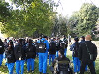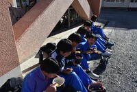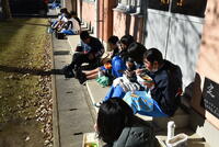 今月の弁当の日も、生徒たちは教室を飛び出して、校内のいろいろなところで食べました。