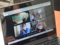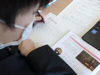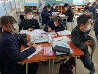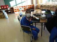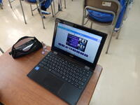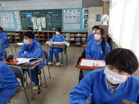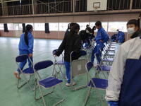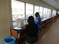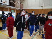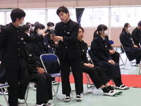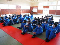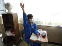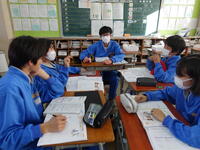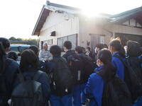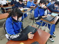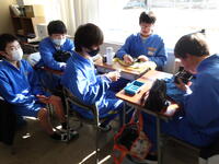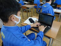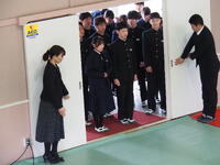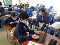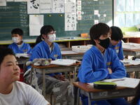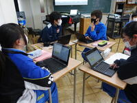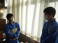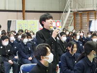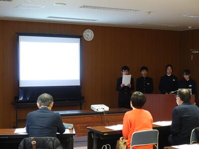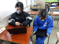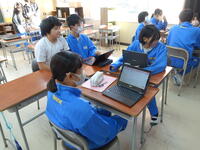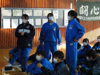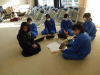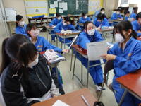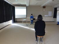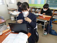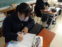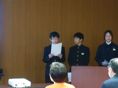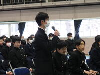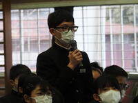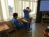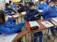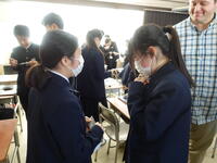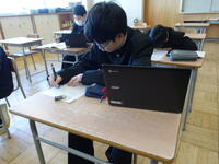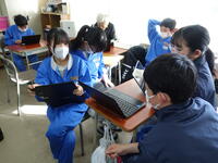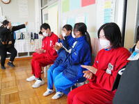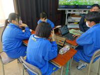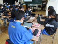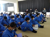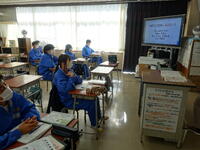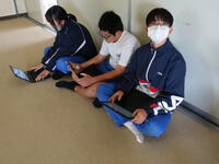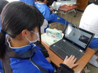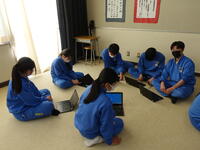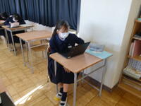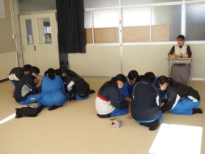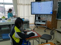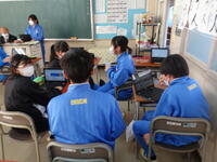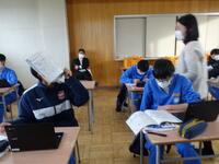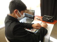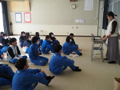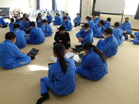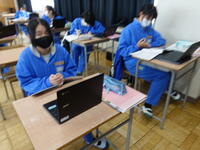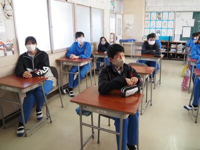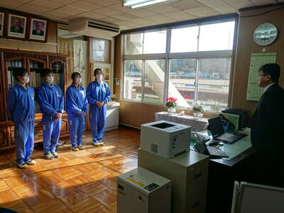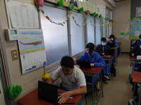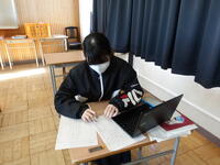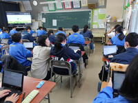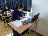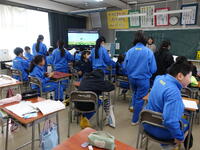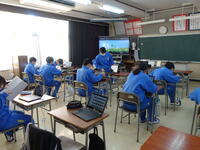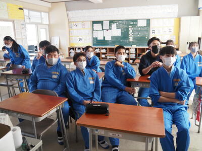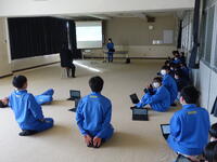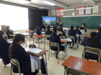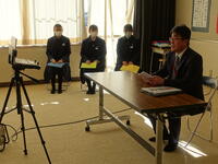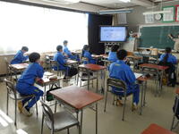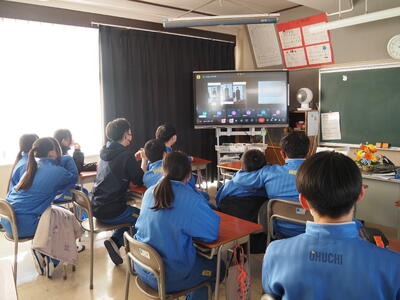 関係生徒が多目的室に集まり、それをオンライン中継しました。