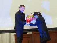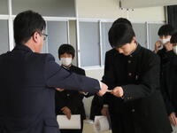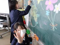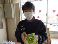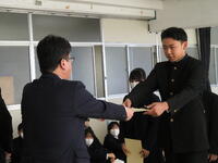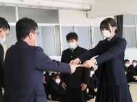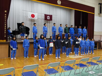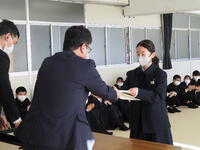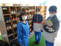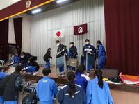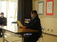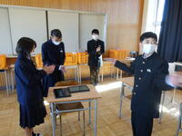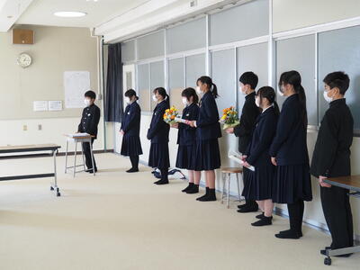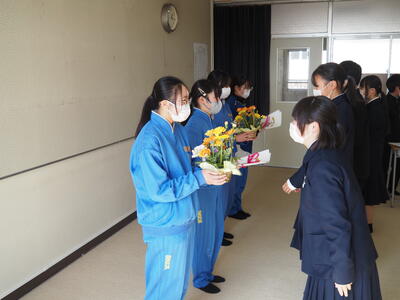 1・2年生の3学期学級委員から3年生の3学期学級委員に記念品と花束が手渡されました。