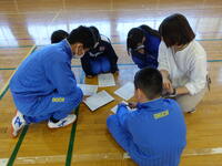 続いて、「口腔状態の二極化」「生活習慣」「体力」の3つのグループに分かれて、健康課題の原因や解決策について判別協議を行いました。