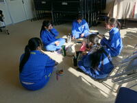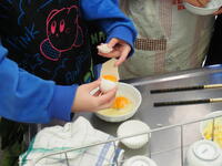 グループになって野菜の名前でリズムをつくったり、料理の具材にリズムを当てはめて料理を完成させるという内容でした。