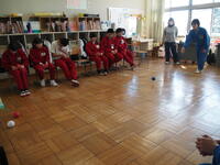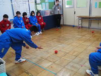 ◆2年1組 保健体育「捕る、投げる動作をマスターしよう」