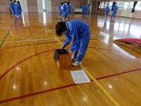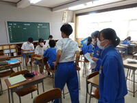 1年1組は職員室・昇降口前、1年2組は理科室前、2年生は新校舎前を担当しました。