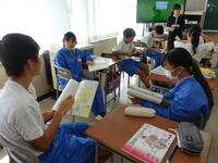 グループに分かれて考えをまとめ、発表者役が代表して意見を発表しました。