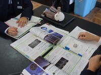 教科書を見ながら、太陽系や銀河など宇宙の広がりを学びました。