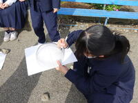 ◆3年1組 理科「透明半球を使って太陽の日周運動を観測しよう」