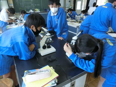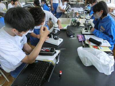 オオカナダモを酢酸オルセイン溶液で染色して、、、