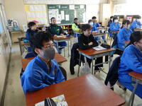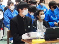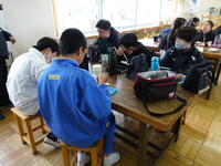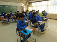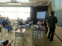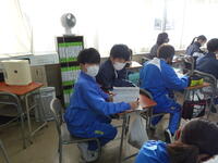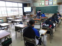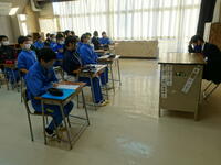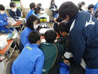 本日2年生を対象に、真岡工業高校の先生と生徒の皆さんが来校し、プログラミング学習の出前講座を行っていただきました。