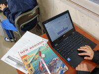 写真は個別学習ですが、このあとペアになって話し合いが行われました。