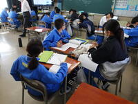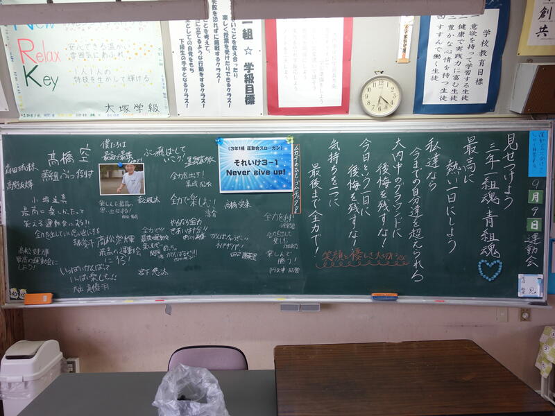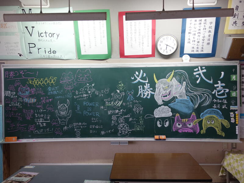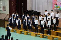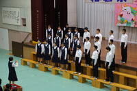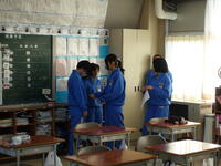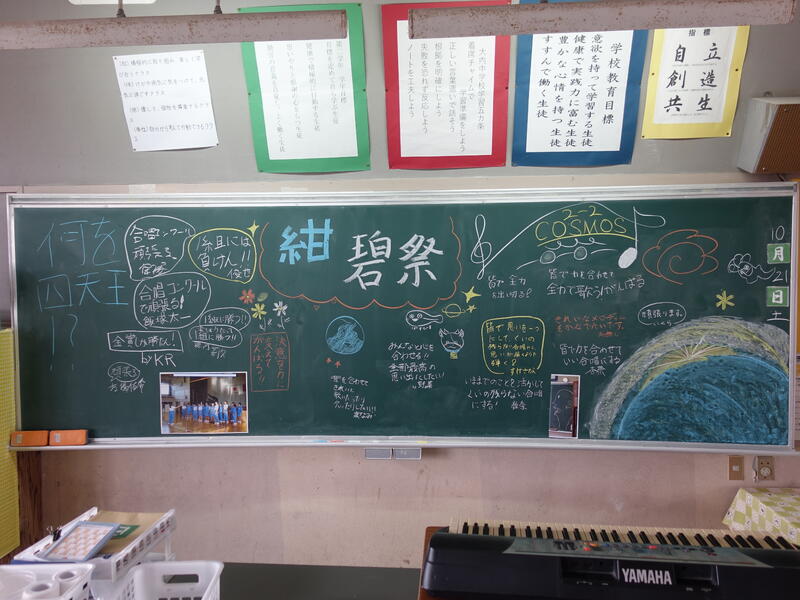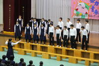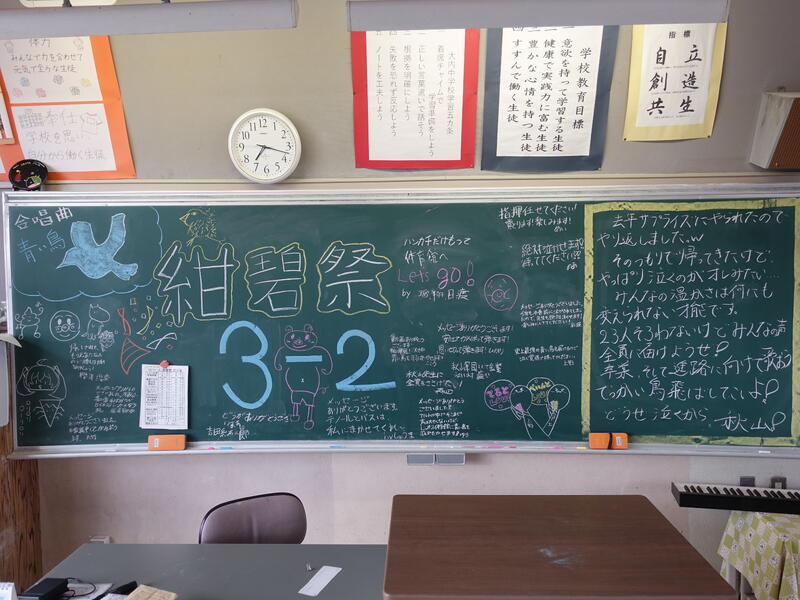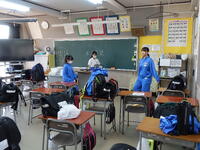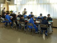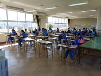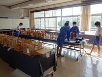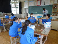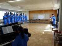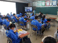 昼食の後に合唱練習が入っている学級はその場所で食べたり、合唱のビデオを見ながら食べたり、外で食べたりと各学級の工夫が見られました。