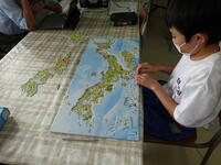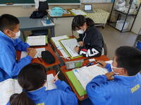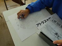 校庭のある場所を説明した文章がヒントで、そのヒントをもとに作図をするとある場所が特定されるという活動です。