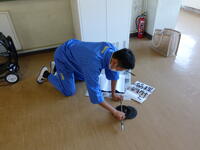 マットを引いて、車椅子で段差を乗り越える体験をしました。