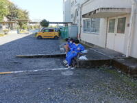 自転車小屋近くの側溝はかなりの土がたまっていて重労働です。