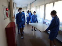 緊急地震速報後に避難するのですが、地震により放送機器が使えない設定のもと実施しました。