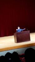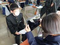 タブレット端末でお互いに録画し合い、自分のスピーチを振り返ることができました。