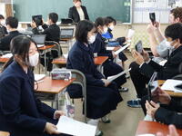 残り1週間を切った合唱コンクールに向けて、タブレットで録画した映像で自分たちの声を確認し、それをすぐに生かしていました。