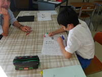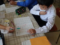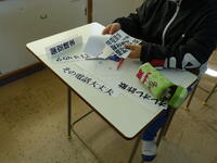 それらを集めていくと、「かいのいすのした」となり、高橋海君の椅子を調べると、手紙と封筒が出てきました。