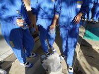 視野が狭くなるゴーグル、手足にはおもりをつけ、周りが見えにくく動きにくい状況を体験しました。