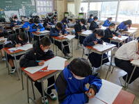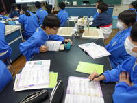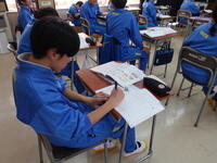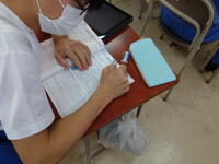技術・家庭は期末テストの日程に組み込まれていないので、通常の授業にて行っています。