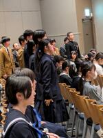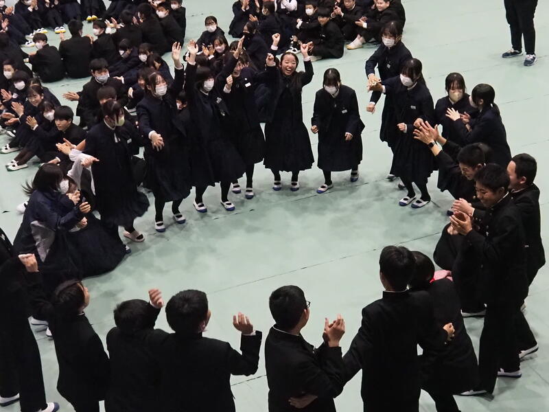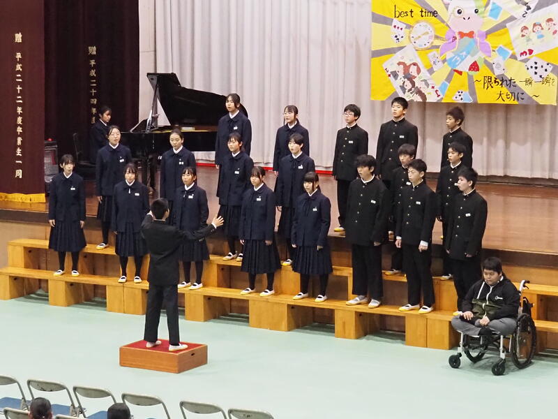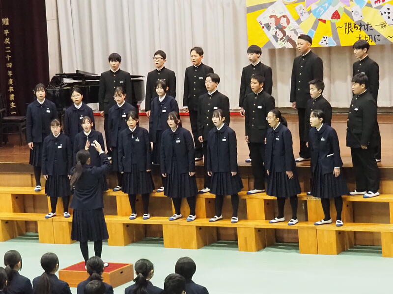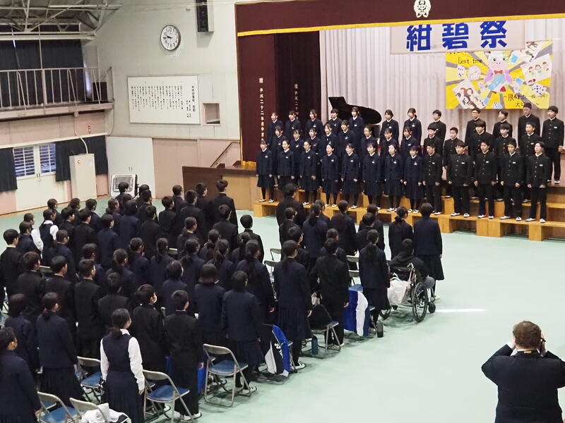 校歌のあと、全員で「ハピネス」を大合唱しました。