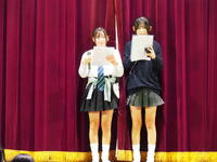 本日午前、真岡市教育祭が行われ、本校から助川紗菜さん、大木梨萌音さんの2名が表彰されました。
