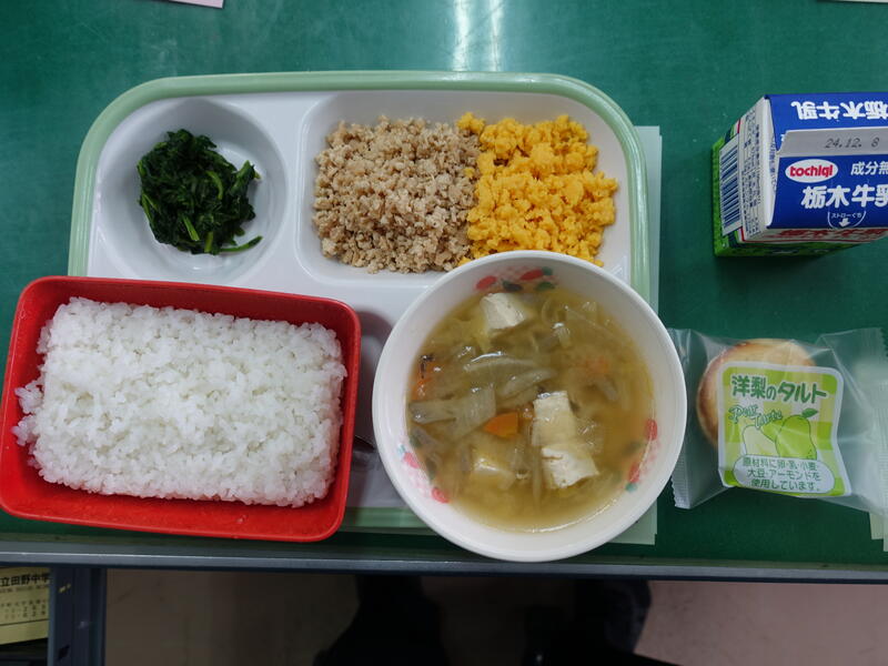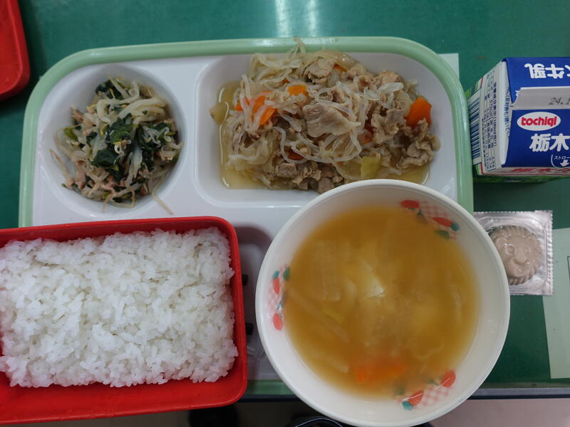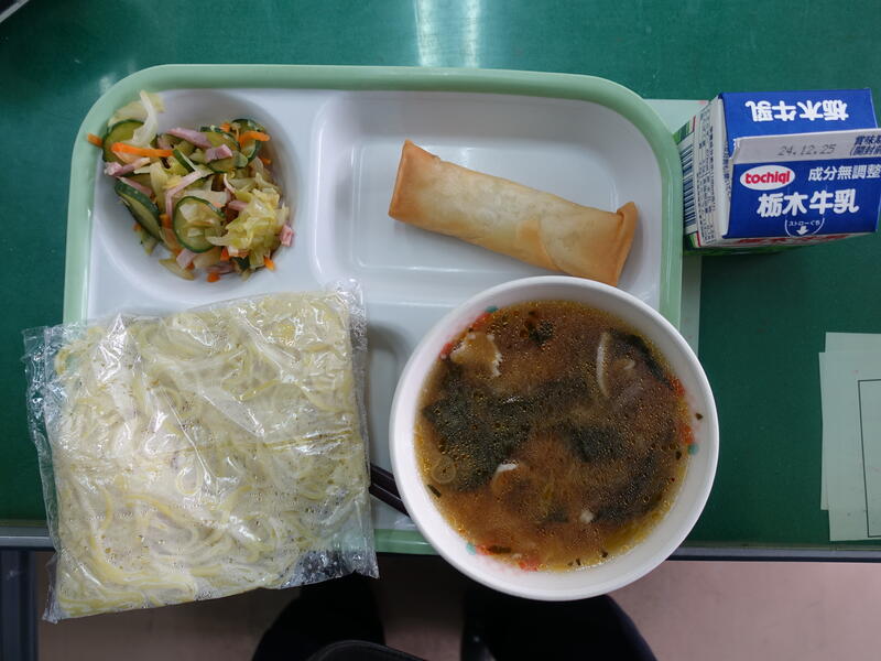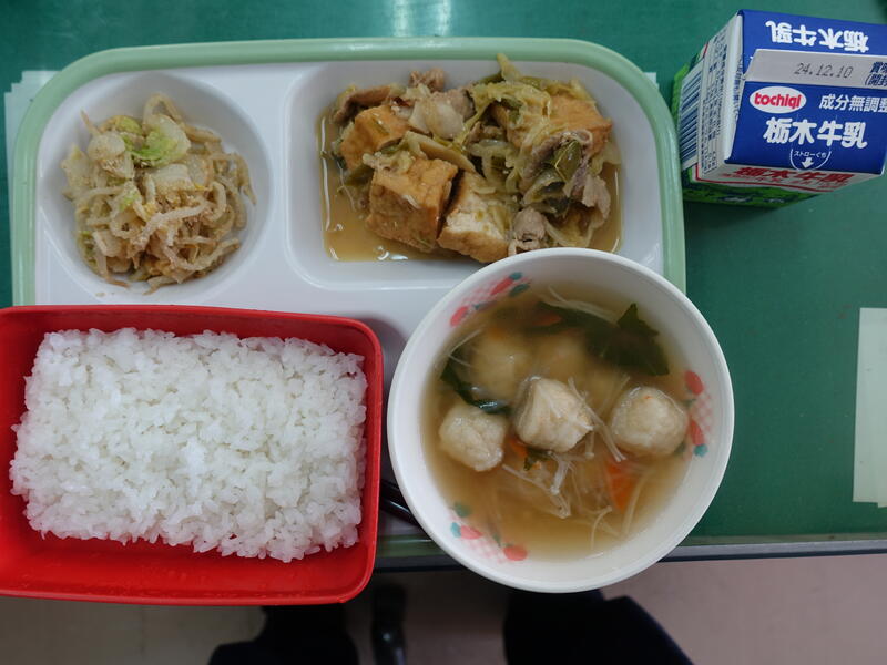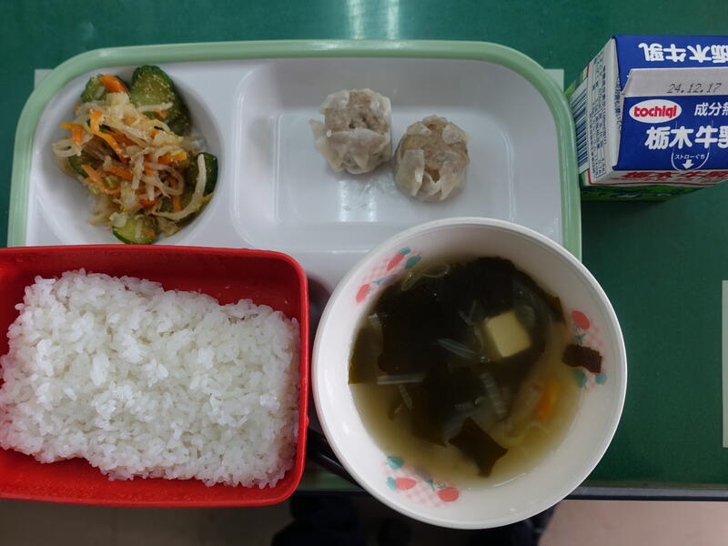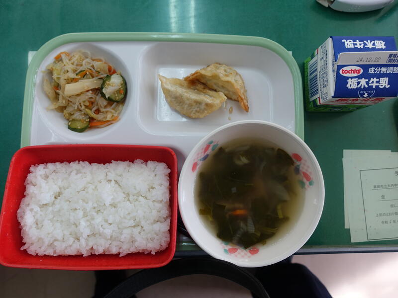 ごはん、牛乳、ぎょうざの甘酢あんかけ②、春雨サラダ、中華スープ