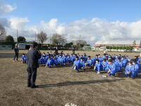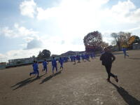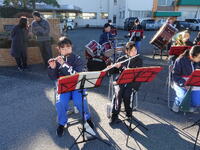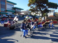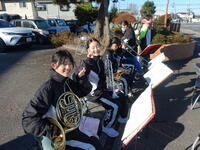 晴天のもと、吹奏楽部がはが路ふれあいマラソンの応援演奏を行いました。