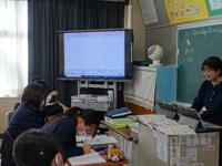 電子黒板を活用して、リスニングを行っていました。結構聞き取れたようです。